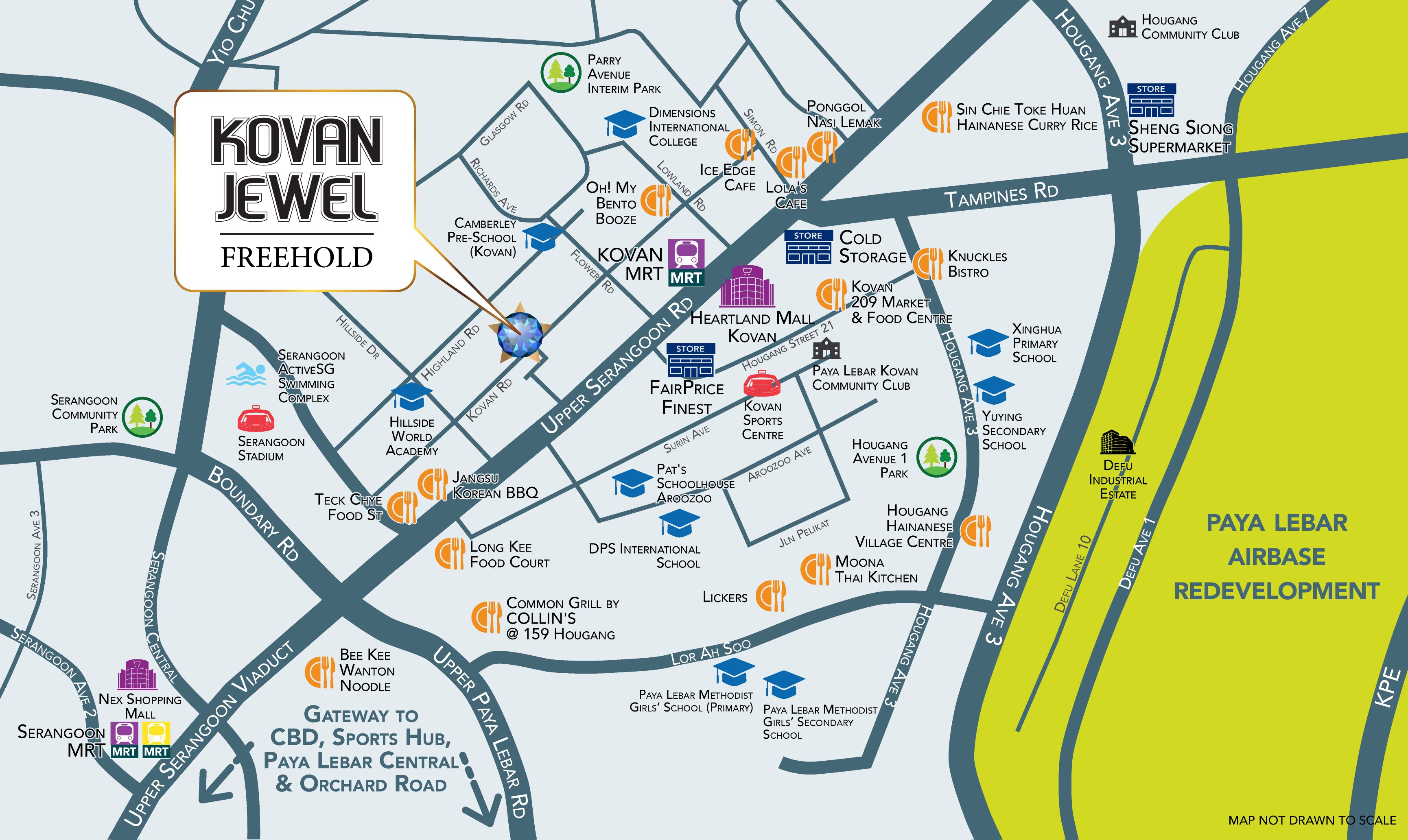 Located along Kovan Road, Kovan Jewel is just a 5-minute walk to Kovan MRT (North-East Line), offering direct access to Dhoby Ghaut, Clarke Quay, and HarbourFront. With major expressways such as the KPE, CTE, and PIE nearby, residents enjoy effortless connectivity to the CBD, Orchard Road, and Changi Airport. A lifestyle hub in itself, Kovan Jewel is surrounded by vibrant dining, shopping, and leisure options.